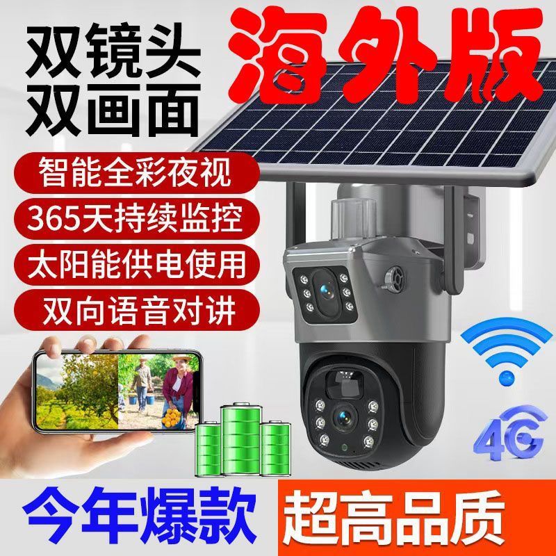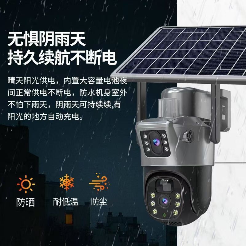 كاميرا طاقة شمسية 2 في 1 مزودة بثلاث كاميرات . تتحرك 360 درجة مزودة بانذار في الحلات الطارئة . zoom 10 بكسل تعمل 4g او واي فاي