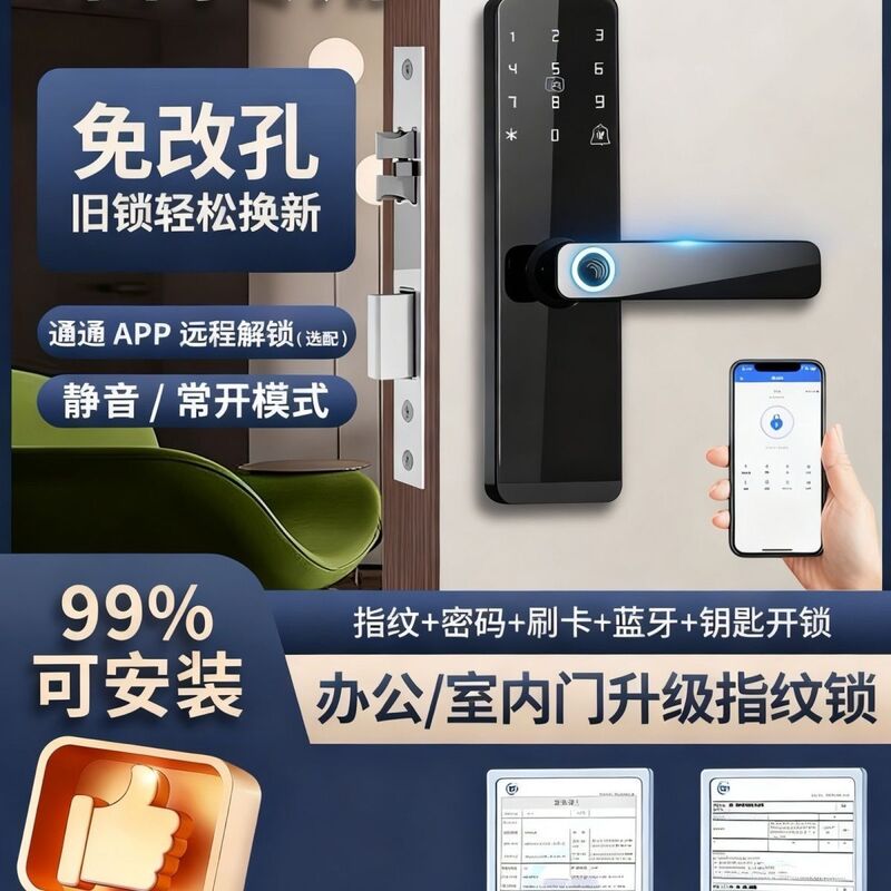 يد الباب الالكترونية تعمل بالبصمة والكرت الالكتروني وشاشة الارقام بالاضافه الى وجود مفتاح مزودة بجميع ما يلزمها للتركيب وتصلح لجميع انواع الابواب